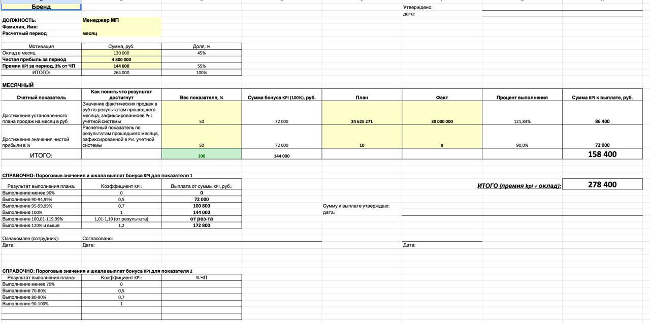 Материальная: система KPI. Но помните: KPI работают только тогда, когда у вас уже есть стратегия и прозрачная оргструктура. Иначе вы будете платить премии за хаос.