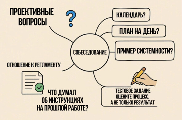 · Спросите о его опыте работы с регламентами и инструкциями на прошлом месте. Выражал ли он недовольство? Считал ли их бесполезными? Или видел в них инструмент для эффективности?