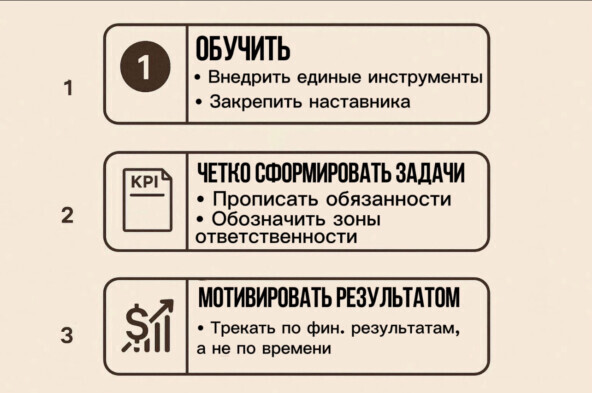 - Формат: Короткие планерки (15-30 минут) по сквозной аналитике. Акцент на отклонениях от плана и решениях по их устранению. Не «что делал?», а «какие результаты получил и что будешь делать дальше?»